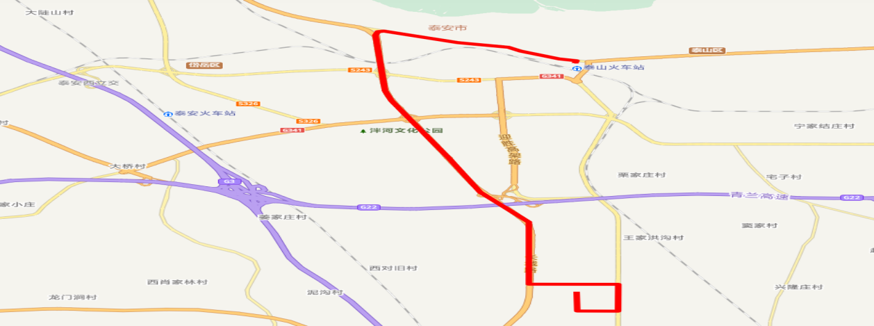 優(yōu)化調(diào)整后9路首末站變?yōu)?/span>泰山火車站廣場(chǎng)和南高新區(qū)公交停車場(chǎng)。運(yùn)行路線為泰山火車站廣場(chǎng)—站前街—龍?zhí)堵?mdash;東岳大街—長(zhǎng)城路—中天門大街—龍?zhí)堵?mdash;一天門大街—龍泉路—南高新區(qū)公交停車場(chǎng)。優(yōu)化調(diào)整后運(yùn)行路線圖如下: